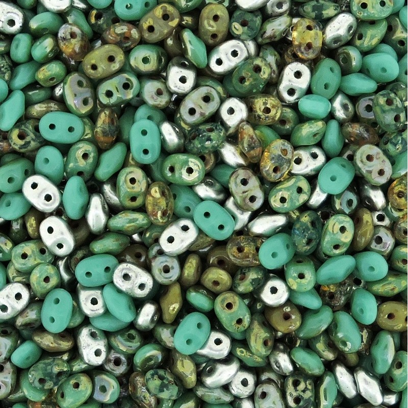 Czech Superduo Two-hole Seed Crystal Beads 5x2.5mm African Turquoise Mix Approx 24 Grams
