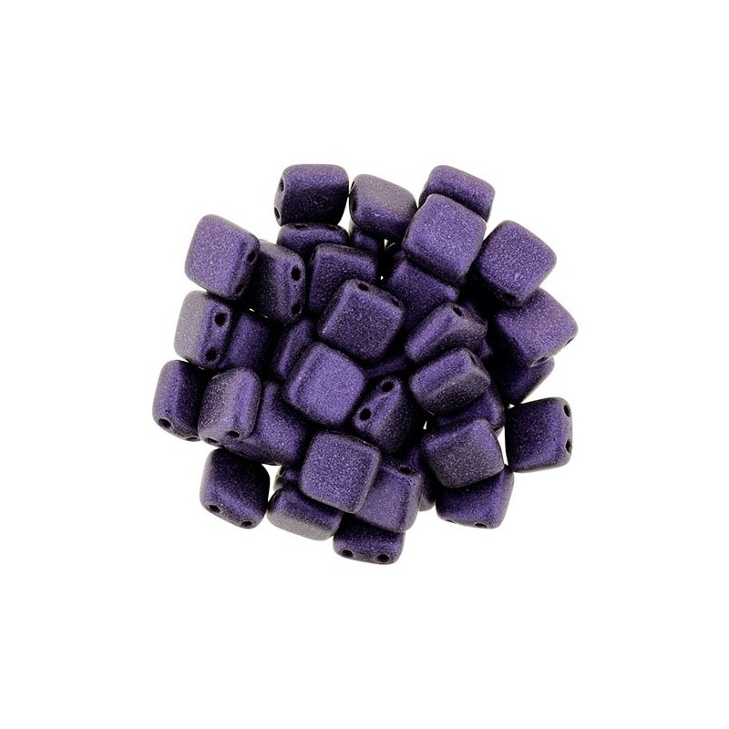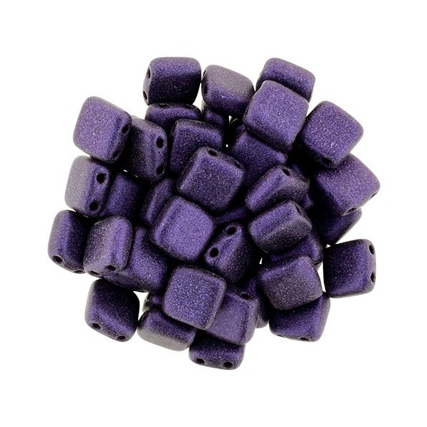 CzechMate 6mm Square Glass Czech Two Hole Tile Bead - Purple Metallic Suede