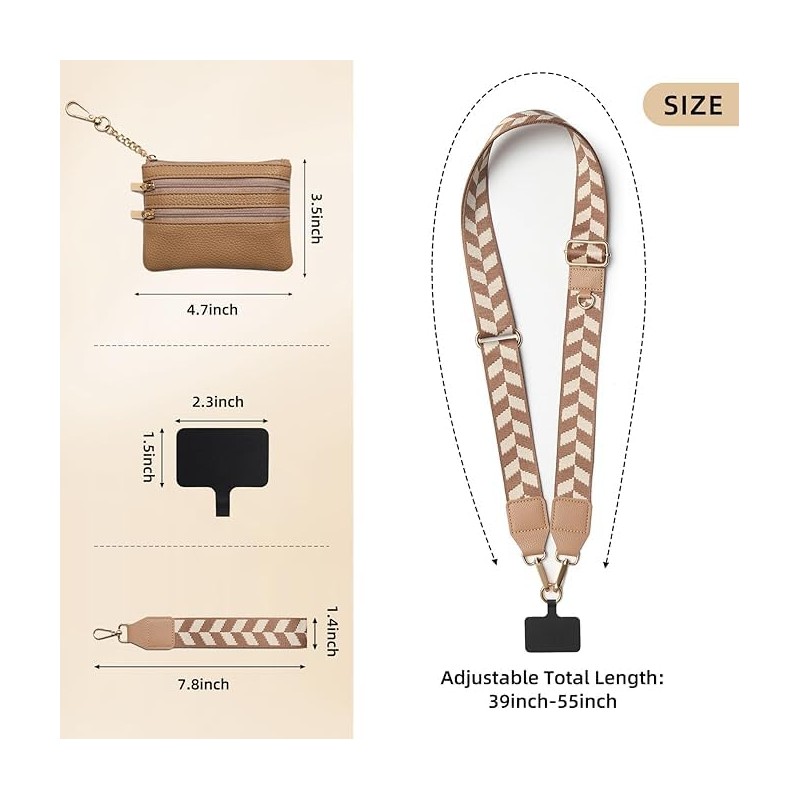 - CHIC AND COMFORTABLE: THE CLIP AND GO STRAP YOU’LL LOVE! – Its adjustable strap allows you to customize the fit, ranging from 40" to 61" long and 1.5" wide, making it a versatile accessory for any outfit. With a removable wristlet and a detachable pouch of 4.5"x3.5", you can easily organize your essentials. Whether you’re dressing up or keeping it casual, this cell phone crossbody bag adapts to your look effortlessly!