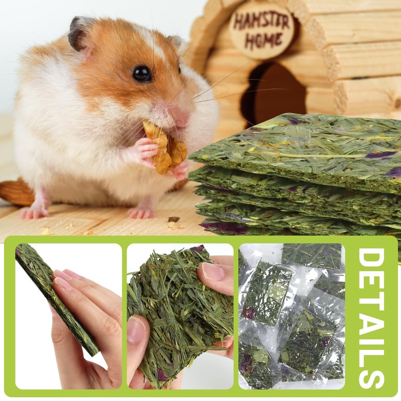 CZWESTC 12 Pcs Timothy Grass Crispy Chips, Rabbit Natural Treats, Timothy Hay Toys Chips Bunny Chew, Snacks for Hamster Chinchillas Gerbils Rats Small Animals Teeth Care