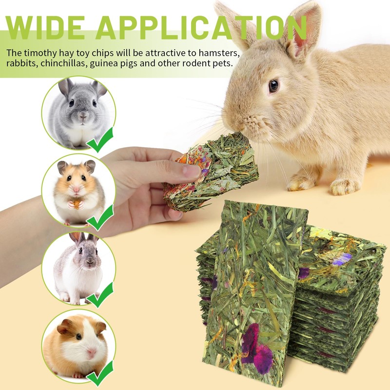 - The timothy hay toy chips will be attractive to hamsters, rabbits, chinchillas, guinea pigs and other rodent pets, it will satisfy their chewing cravings.