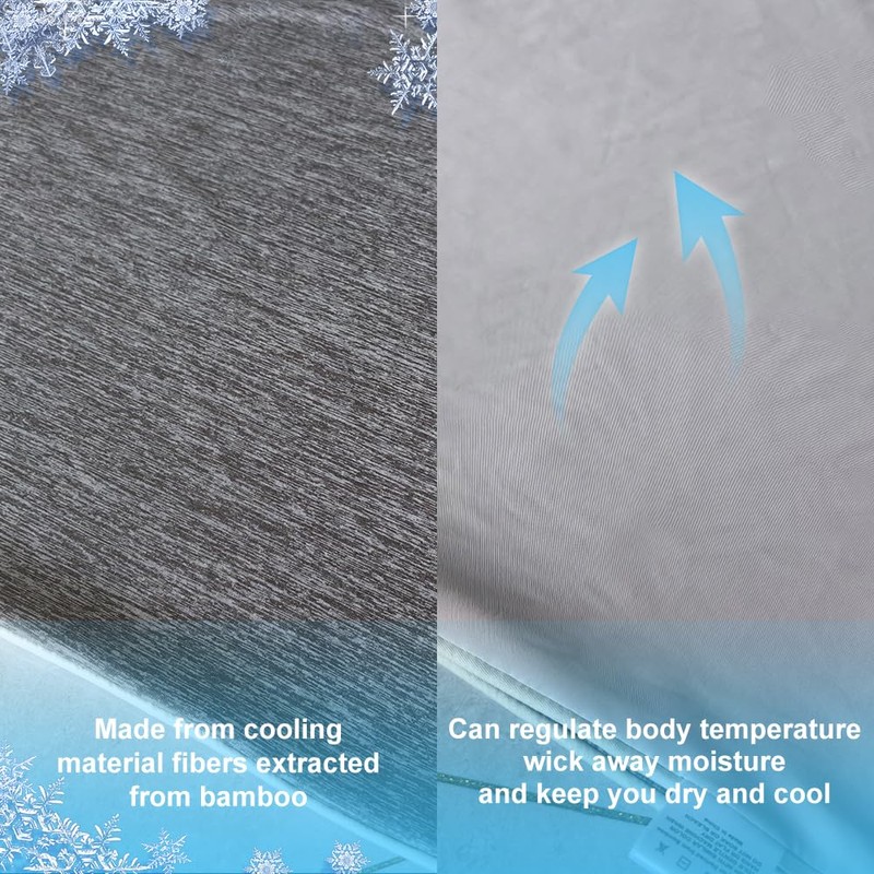 • ❄【Soft and Breathable Cooling Blanket】 Our cooling blanket is made from cooling material fibers extracted from bamboo. The blanket is very soft, skin-friendly, comfortable, and breathable. It can regulate body temperature, wick away moisture, and keep you dry and cool throughout the summer.