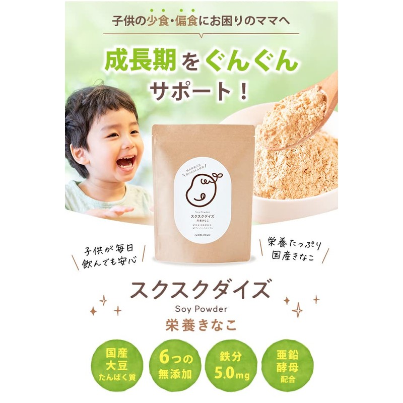 スクスクダイズ きなこ味 無添加 国産大豆 子供 鉄分 カルシウム 亜鉛 ビタミンD 身長 サプリ きな粉 200g【約30食分】 アストリション