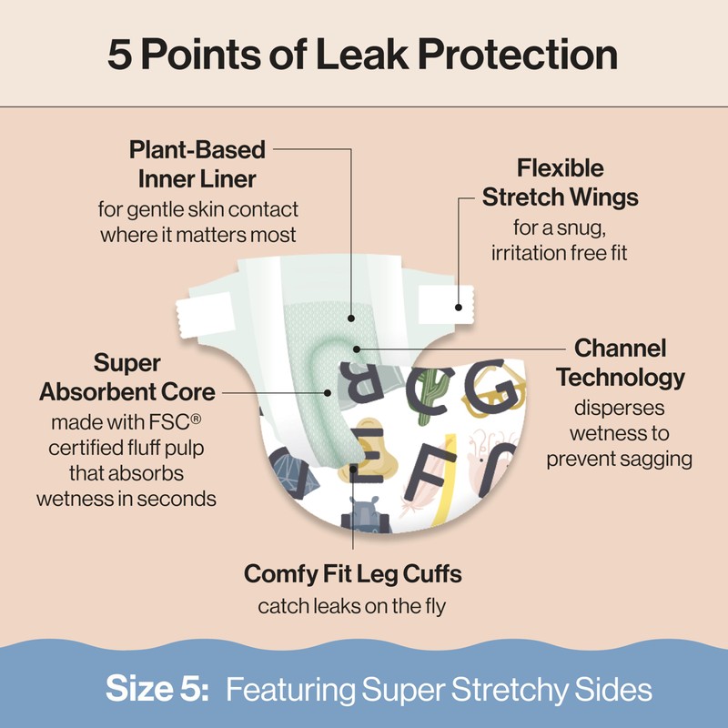 The Honest Company Clean Conscious Diapers for Delicate Skin | Up to 100% Leakproof | Hypoallergenic, Fragrance Free | Gender Neutral | Club Box, Size 5 (27+ lbs), 44 Count (Prints May Vary)