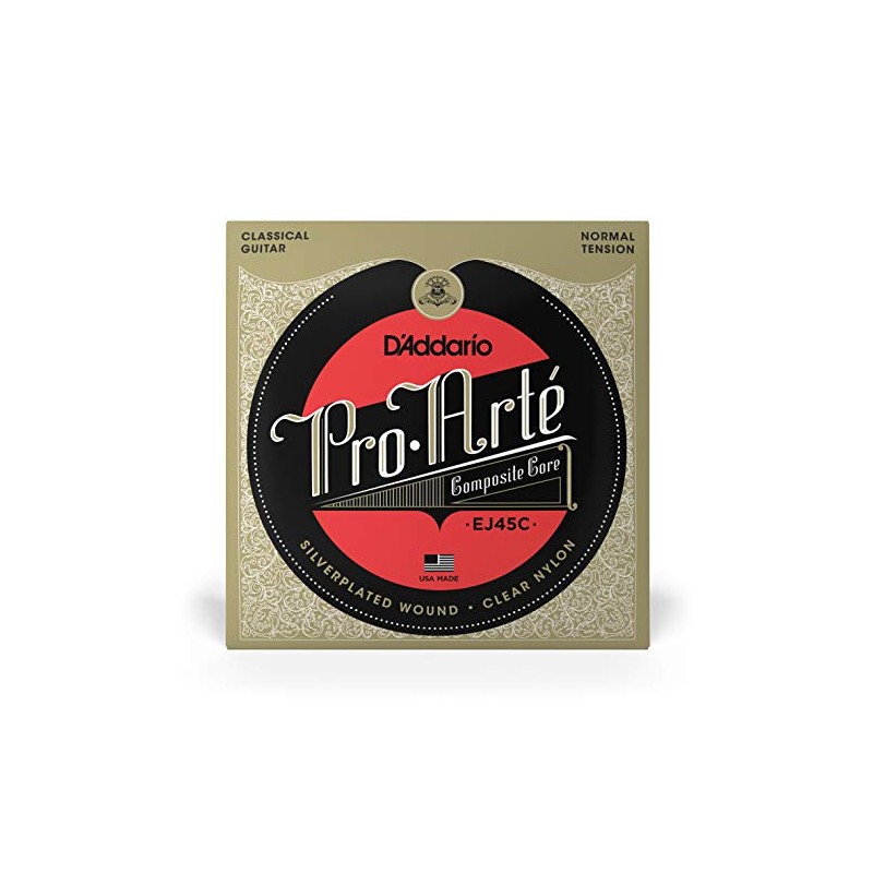 Product DescriptionPro-Arte' Composite strings offer the traditional elegance of our Pro-Arte' line, with the added benefit of an elevated bass response. The exclusive composite core bass strings in the set produce a bold, projecting low-end, providing a more influential tone than nylon basses. Paired with the mellow warmth of our clear nylon trebles, Pro-Arte' Composite strings offer a sound which is both alluring and commanding. This Normal Tension set is our best-selling tension, preferred for its balance of rich tone, comfortable feel, and dynamic projection.From the ManufacturerEJ45C, normal tension, is D'Addario's best selling "composite" set, preferred for its balance of bold, yet warm tone, comfortable feel and dynamic projection.Pro-Arte composite strings feature an exclusive multifilament stranded core material which delivers a powerful, but warm tone which lasts 2-3 times longer than traditional classical strings. In addition to three traditional nylon treble strings, each set contains an optional monofilament composite 3rd/G string, which provides greater projection and optimal balance between basses and trebles. All Pro-Arte treble strings are sorted by a sophisticated computer-controlled laser machine which performs diameter/tension measurements and quality checks, ensuring true sounding, precise trebles in every set.D'Addario, the world's largest manufacturer of musical instrument strings, is known as The Players Choice with a reputation for unsurpassed quality and consistency. D'Addario's innovative packaging reduces waste and provides protection from corrosion. All D'Addario strings are manufactured in the U.S.A. using proprietary, digitally controlled, state-of-the-art machinery for unmatched performance, set after set.