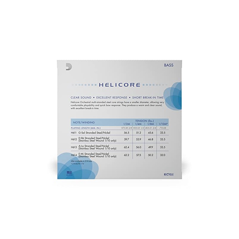 D'Addario Helicore Orchestral Bass String Set, 1/10 Scale, Medium Tension