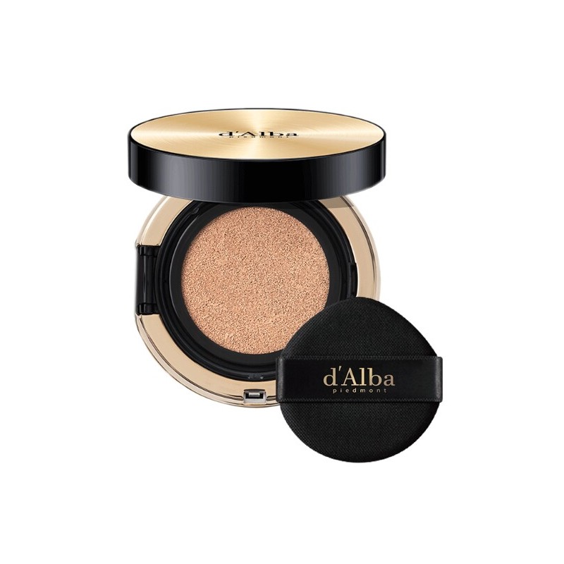 Glow coverage cushion for light adherence and lustrous finish. Triple-functional product for skin brightening, anti-wrinkle, and UV blockage. Formulated with SPF50+/PA++++. Officially authorized by an Italian vegan cosmetics agency and completed low skin irritation test. Enriched hydration as if using essence. Light and fine adherence on the skin. Glow Fit Cushion complete with light adherence and lustrous coverage. Double coverage from the spherical powder providing primary coverage on uneven areas and the flake powder giving secondary coverage of flat areas of the skin. Both hard and soft film polymers are fixed on the skin to help with providing skin moisturizing and glow, while at the same time enhancing makeup lasting effect. Experience smooth and glossy skin complete with light and moisturizing coverage. The shades that perfectly fit on any skin types provide beautiful skin texture from clear coverage and luster. Adjust the amount on the blending palette, or blend the cushion with d’Alba serum and ampoule for advanced glow. Quadruple-layered coating puff with a pointed shape for detailed makeup. The patented quadruple-layered rubycell puff added with one coated layer prevents excessive absorption of the foundation to the cushion to provide ultra-moisturizing and lustrous skin in a sanitary way.