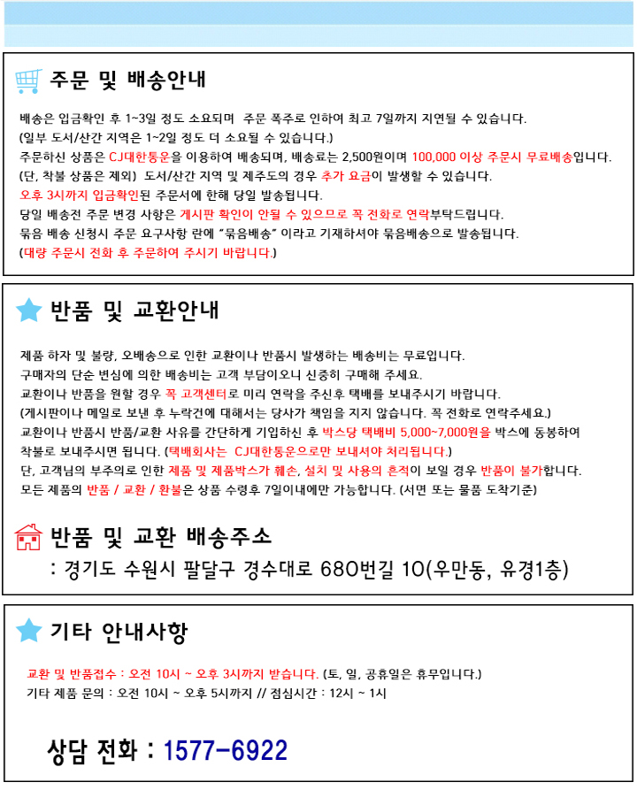- A/S manager and phone number or consumer consultation phone number: Contact seller 1577-6922