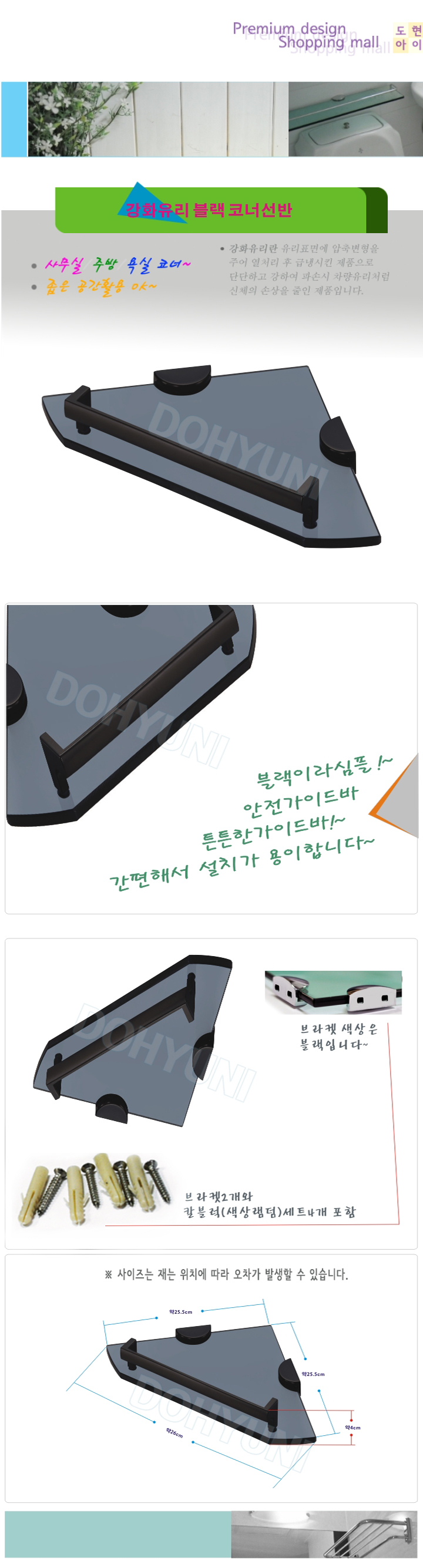 [D&I] Tempered glass black corner shelf (imported) / bathroom shelf / [D&I] 강화유리블랙코너선반(수입) / 욕실선반