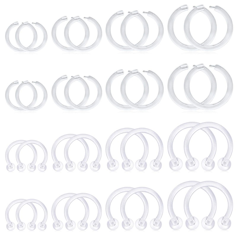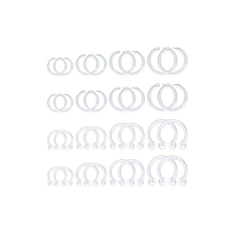 - [Total 32pcs] * 16pcs horseshoe hoop retainer, * 16pcs clear clicker rings
