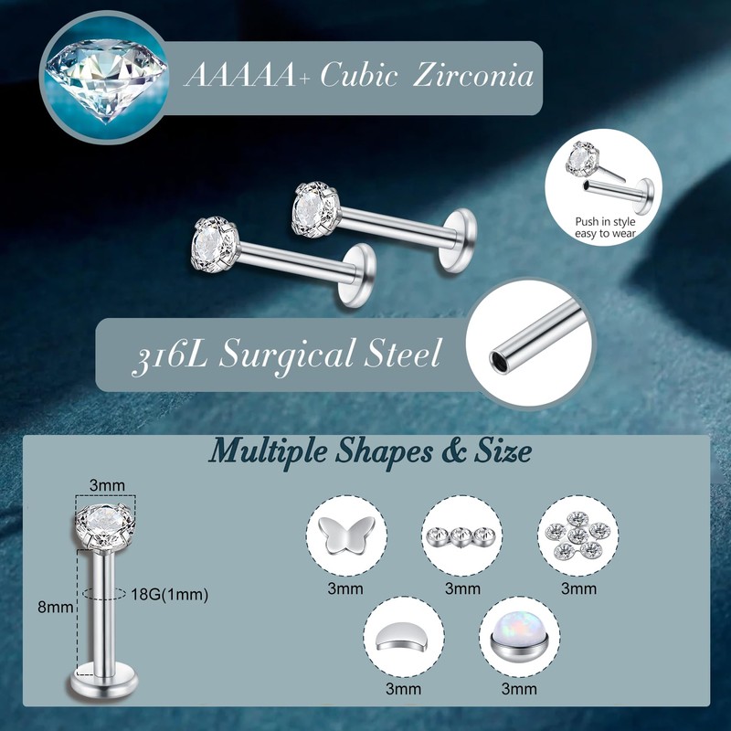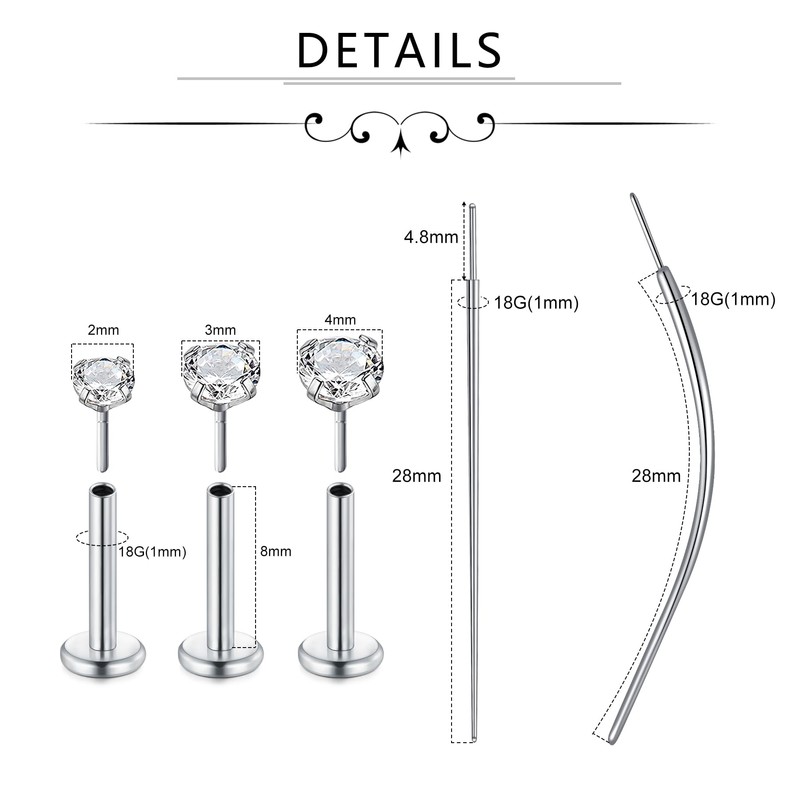 - Easy to Wear:Two different shapes of pins help you wear different parts efficiently,such as Lip Cartilage Helix Tragus,etc.Insert stud earrings are easy to put in/take out.