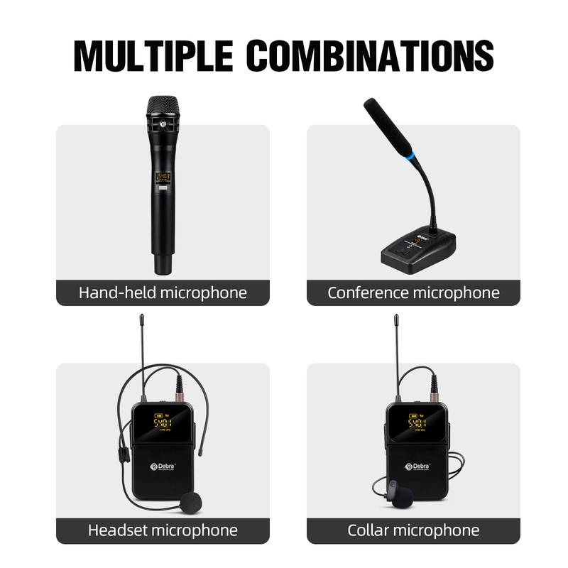 - The wireless microphone system uses an energy-efficient design. there are a variety of microphone combinations for you to choose from, suitable for a variety of occasions. For example: speeches, conferences, churches, etc.