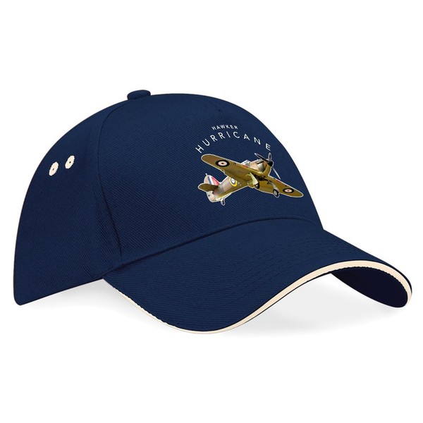 D Design Invent Print! Hawker Hurricane Hat Baseball Cap WWII Aircraft Gift Present Keepsake Memorabilia for Men and Women Adjustable (Cotton, Navy/White Trim)