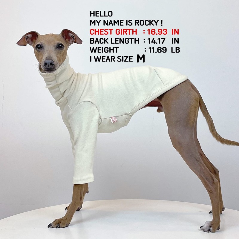 - Turtleneck, long back length, long-sleeved T-shirt pattern: Best for greyhound !