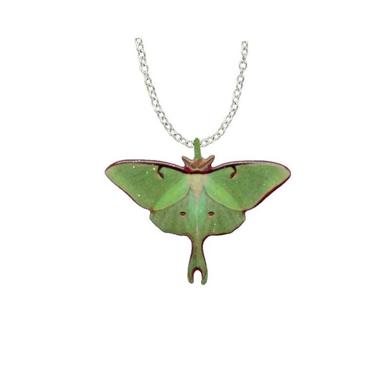 d'ears Luna Moth Necklace Stainless Steel 18" Chain, made in the U.S.A. by family run small business. great gift for moth or luna moth lovers. Item #4943X