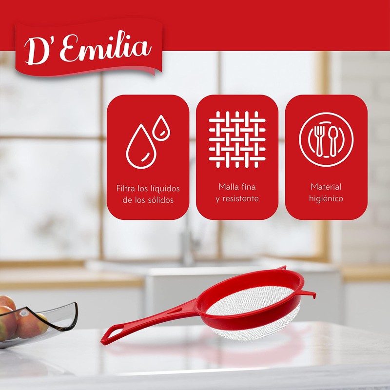 - Versatile and practical – the plastic sieve from D'Emilia is a practical and versatile utensil for any household. With its durable and corrosion-resistant design, this colander is designed to withstand everyday use in the kitchen.