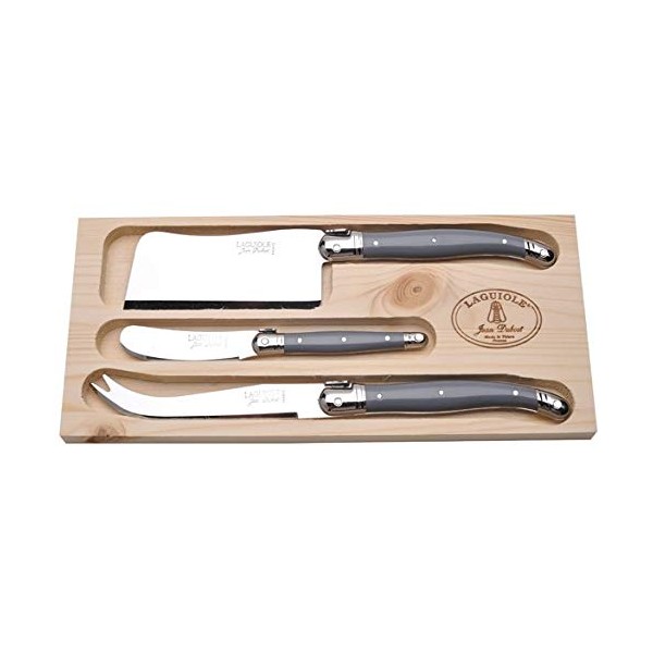 (D) Laguiole Hand Made French Cheese Set in Tray 3pc Vintage (Gray Handles)