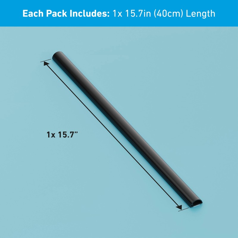 D-Line 15.7in TV Cord Hider, Patented Half Round Cable Cover, Hide Wall Mount TV Wires, Hinged One-Piece Cable Concealer, Adhesive, Decorative Raceway - 0.78in W x 0.39in H x 15.7in L - Black