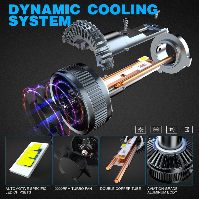 • ✅【Super Efficient Thermal Cooling System】: The body of 9006 LED bulbs is made of aviation aluminum heat dissipation with powerful fan cooling design. Efficient cooling system, for better heat dissipation and longer life.