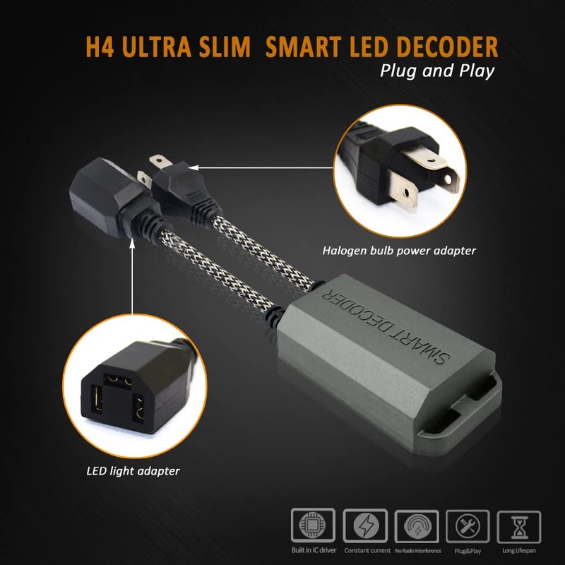 • Fitment List: Compatible for H4 HB2 9003 Plug for LED Light. Wide Voltage DC 9V-16V, Wide service temperature range -40°C to 85°C, Power 13W/12V, Capactor 10000UF and 100% Waterproof design. Note: This decoders DO NOT FIT FOR HID Lights.