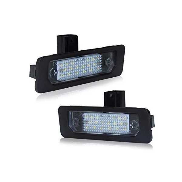 • 【High Quality Performance】: These license plate lights are much brighter than stock lights. Built-in high power 18 SMD LED chips, made of PC/ABS plastic lens and housing processed with ultrasonic treatment, 6000K white bright lights output maximize illumination and IP67 rated waterproof. Canbus LED control unit design, no error code.
