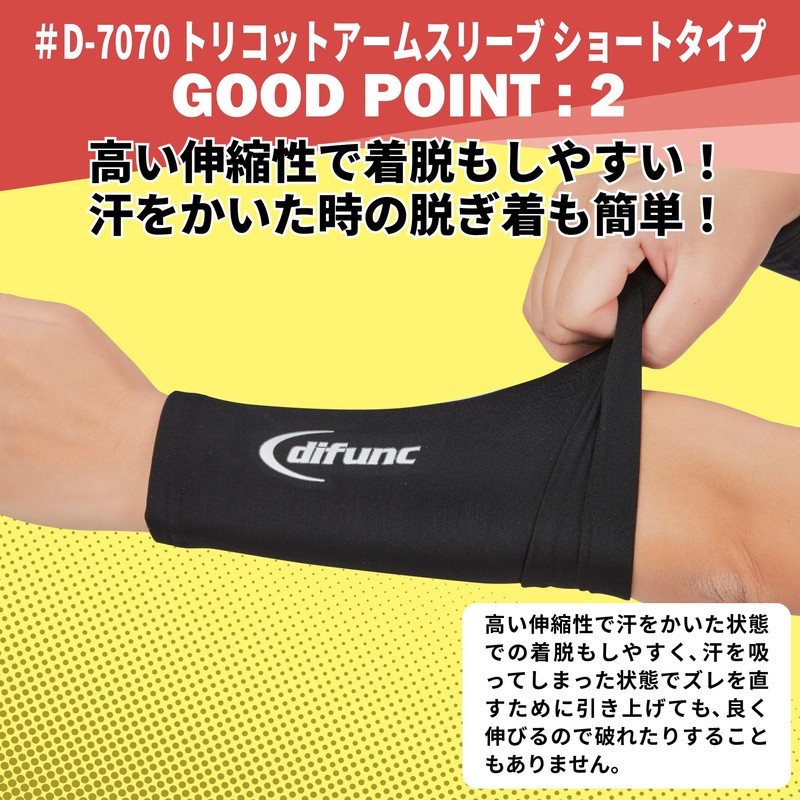 D&M Arm Cover, Tricot Arm Sleeve, Short, Black, L Size