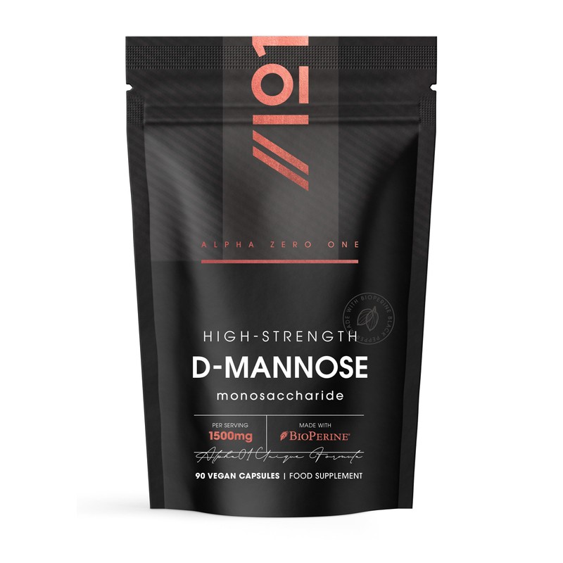 D-Mannose 1500mg with BioPerine® – 90 Vegan Capsules – Made with BioPerine® Black Pepper for Higher Bioavailability – Resealable and Recyclable Pouch – by Alpha01®