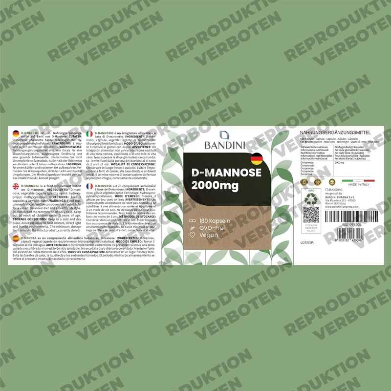 D-Mannose for Cystitis, 2000 mg Pure, High Dose, 180 Capsules, 3 Capsules/Day for 2 Months, Urinary Tract Support, D-Mannose, Vegan and GMO Free