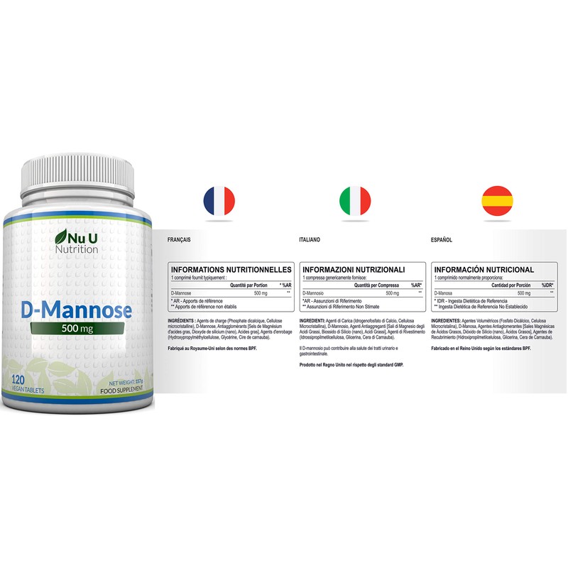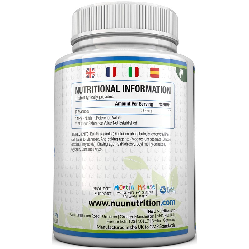 D-Mannose Tablets 500mg | 120 Tablets | High Strength | Allergen Free and Suitable for Vegetarians and Vegans | Not Mannose Capsules or Powder Made in The UK by Nu U Nutrition