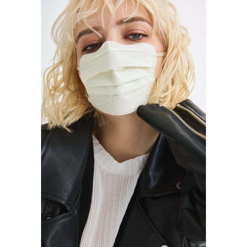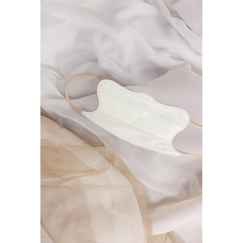 [D.masque] 【冷感マスク】 オフホワイト × ライトベージュ For Ladies'【ウイルス飛沫99%カット・不織布3層構造・デザインマスク】 5枚入