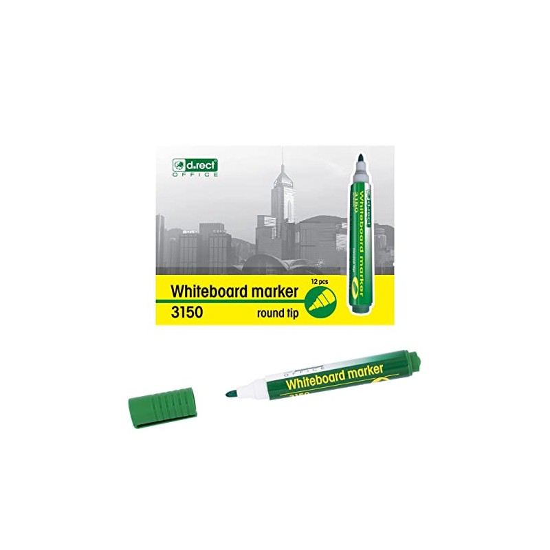 D.RECT 3150 Whiteboard Marker for Whiteboards and Flipcharts, Wipe Clean Glass Board Marker Bullet Tip Pack of 12 Green