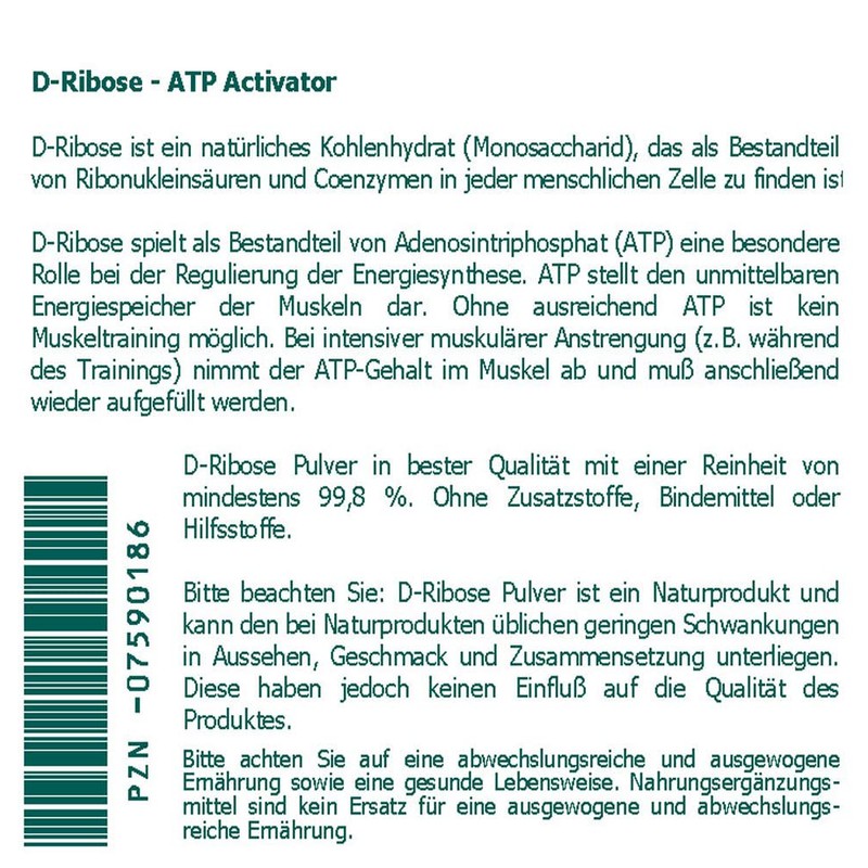 D-Ribose 100% High Purity Powder 250 g - ATP Activator