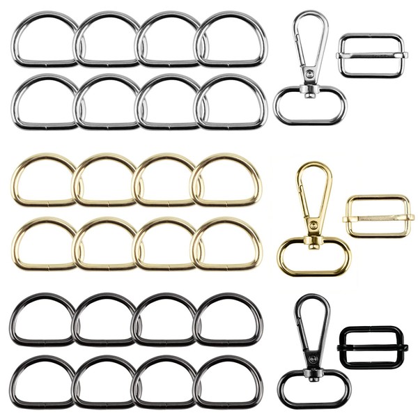 D Ring Carabiner Hook 30 Pieces Rings Half Rings Metal 25 mm Bag Accessories for DIY Handbag, Purse Hardware Lanyard Purse Bags Straps Dog Collars and Sewing Projects