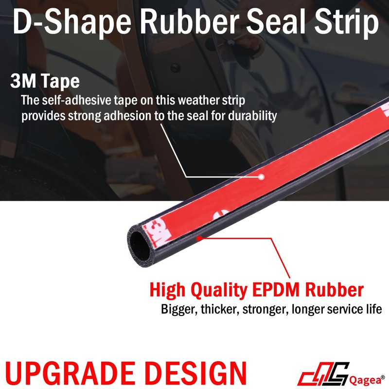 D-Shape Rubber Seal Strip, Automotive Door Weather Stripping with Self-Adhesive to Reduce Noise and Water-Leaking Apply to Car, Truck, RV, Boat and Home Application (28ft)