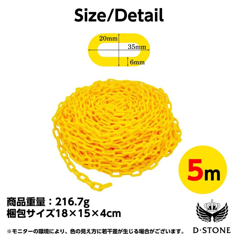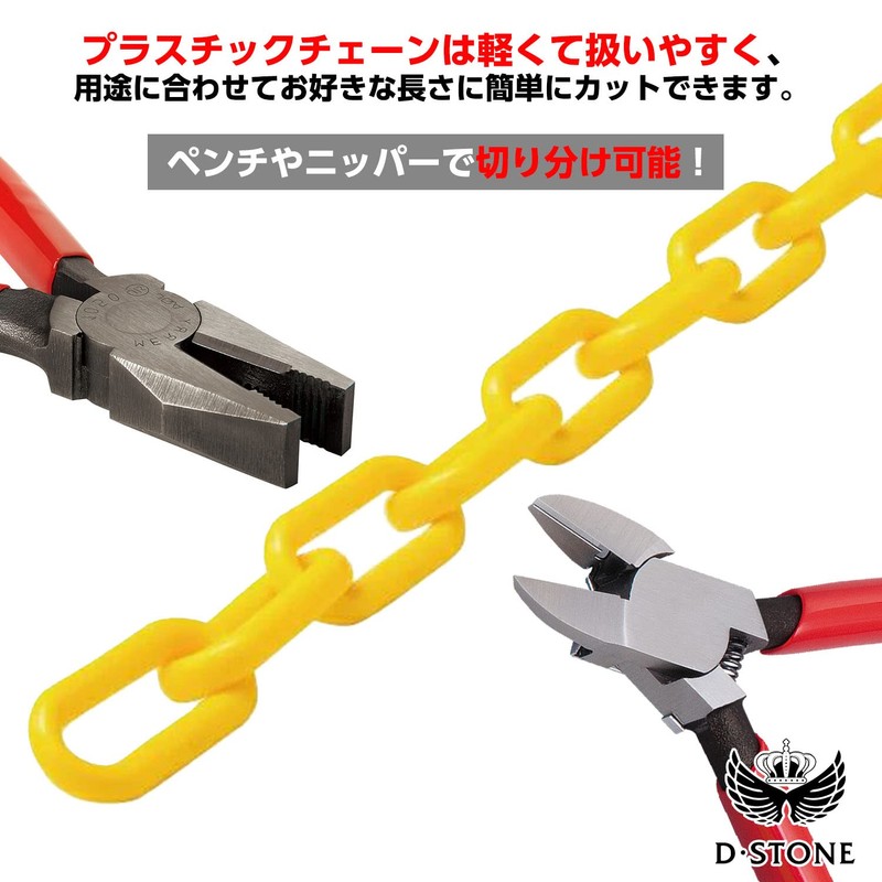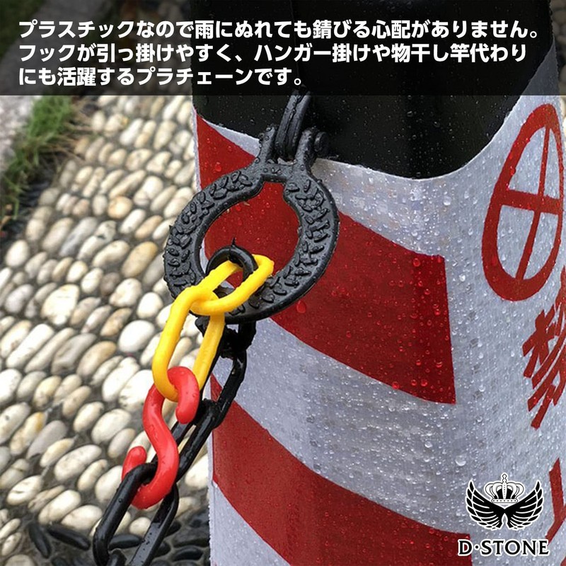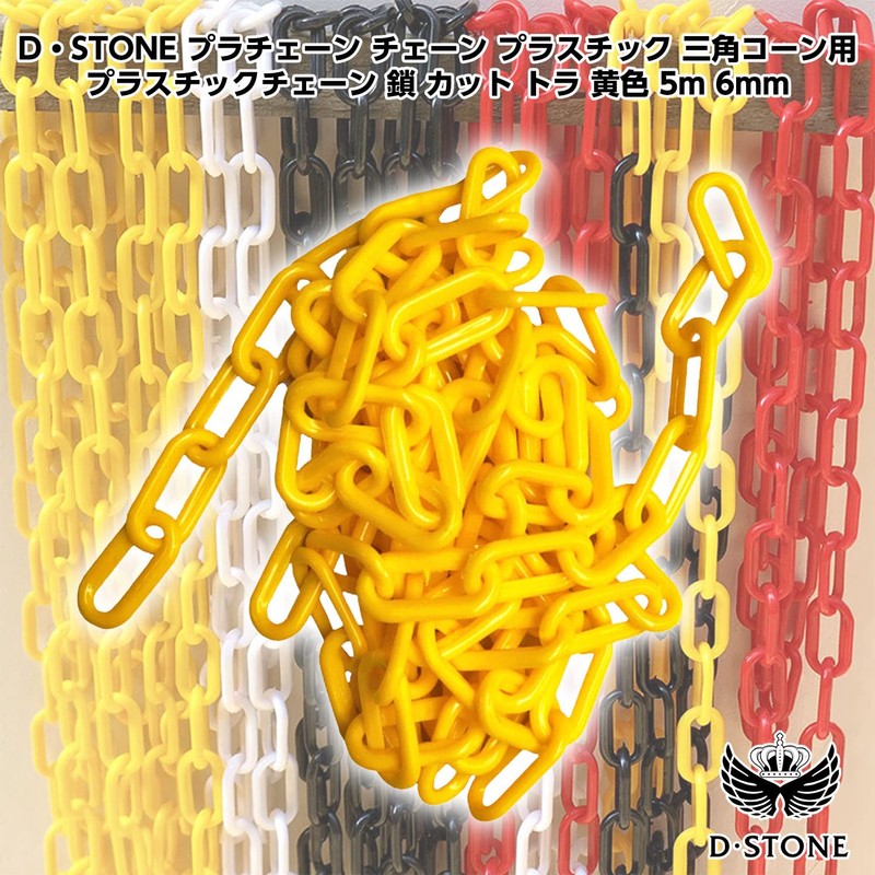 - This chain is made of plastic 6mm diameter and 5m long. The yellow chain makes it easy to see like a tiger pattern and is perfect for triangular cones such as prohibited sites