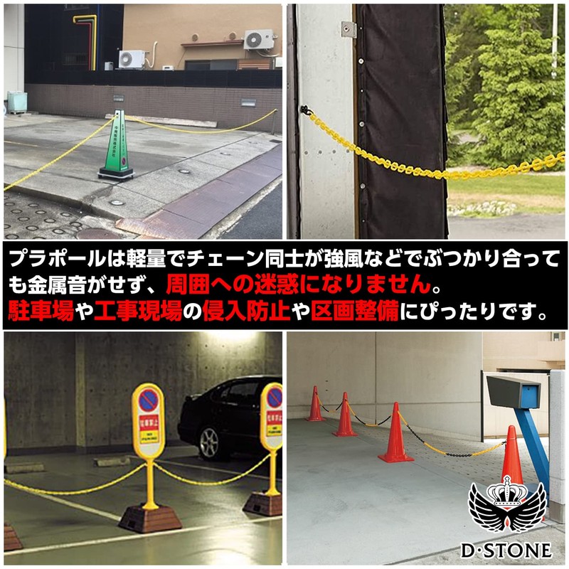 - The plastic pole is lightweight and does not sound metal even if the chain gets struck with strong winds, so it won't disturb your surroundings. Perfect for parking lots and construction sites to prevent entry and parcel maintenance