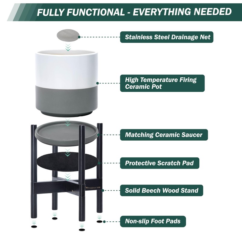 • 8 Inch Pot with Stand Set: Planter size: 8"Diameter x 8"H; pot with stand total height: 15 inch.
