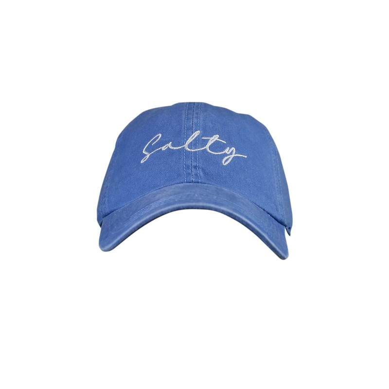 D&Y Pastime Outdoor Embroidered Low Profile Baseball Cap, Cursive Salty, Denim Blue