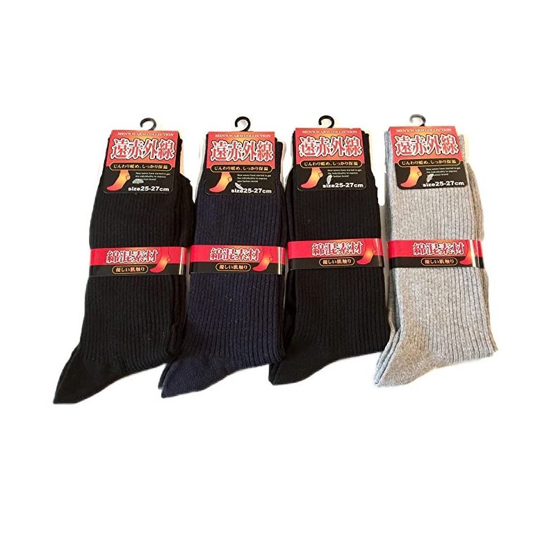 D09 Men's Warm Socks, Far Infrared Heating, Business Socks, 9.8 - 10.6 inches (25 - 27 cm), Charcoal, Black, Value 4 Pairs (Colors Available), grey/black/navy