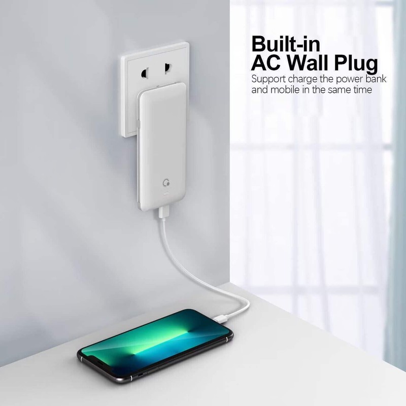 10000mAh Q Portable Charger Built IN AC Wall Plug Ultra Slim USB C Power Bank