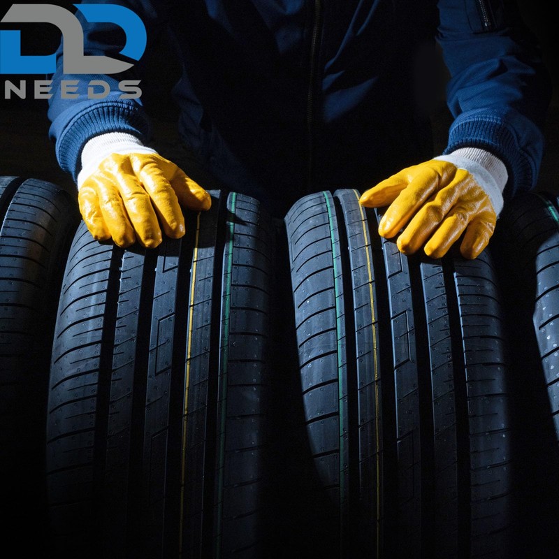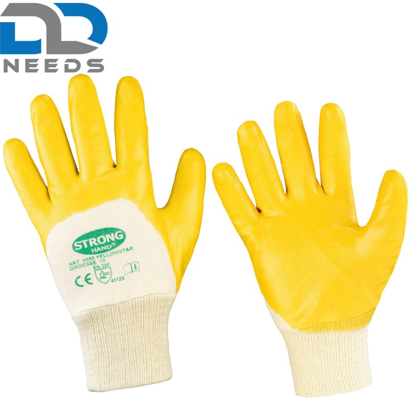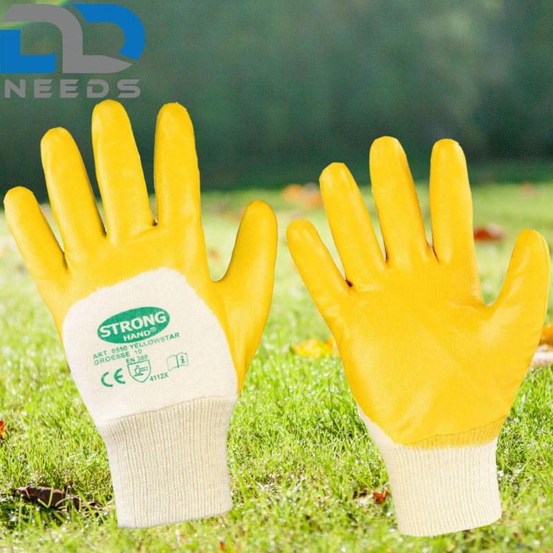 D2D | 12 Pairs - Cotton Gloves - Size: 11 (XXL) - Yellow - with Nitrile Coating - Standard EN 388 CAT 2 - Work Gloves - PU Assembly Gloves Garden Gloves