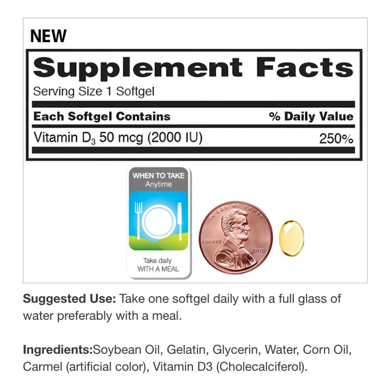 D3 50mcg 2,000iu 600 Softgels Sin Sabor