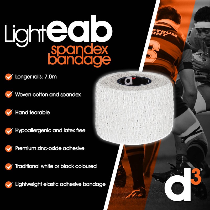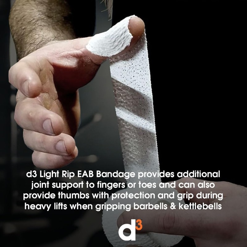 d3 Light Rip EAB Spandex Bandage Hand-Tearable Black 25mm x 7m (6 Rolls) Thumb, Toe, Finger Joint Strapping & Weightlifting Grip Tape