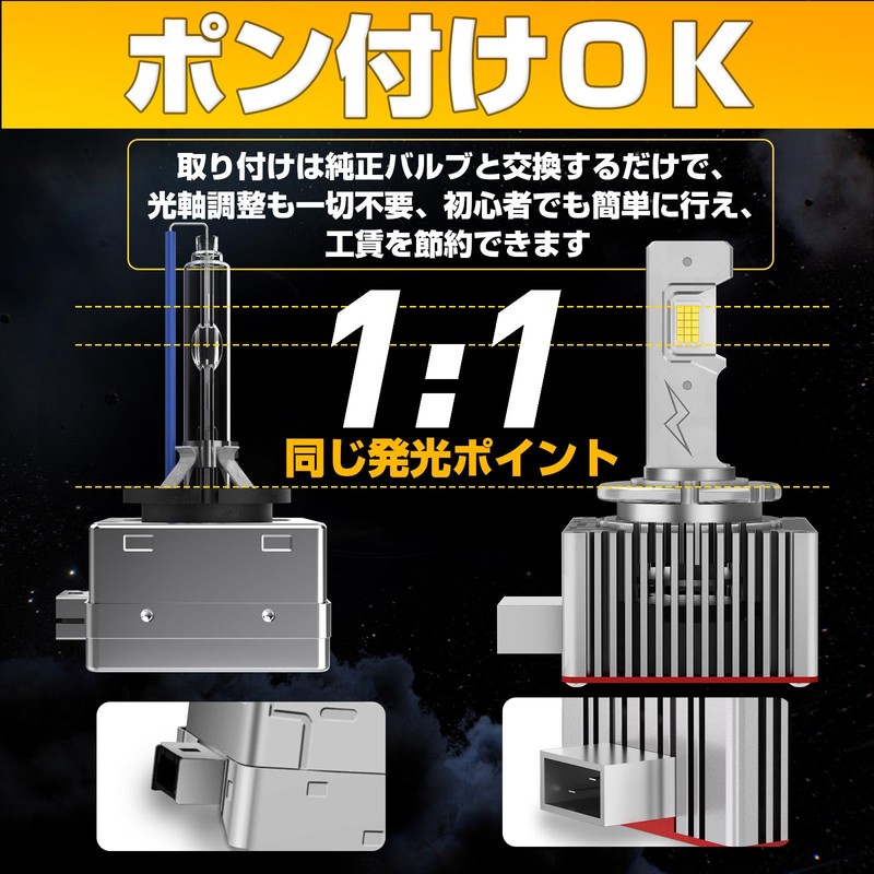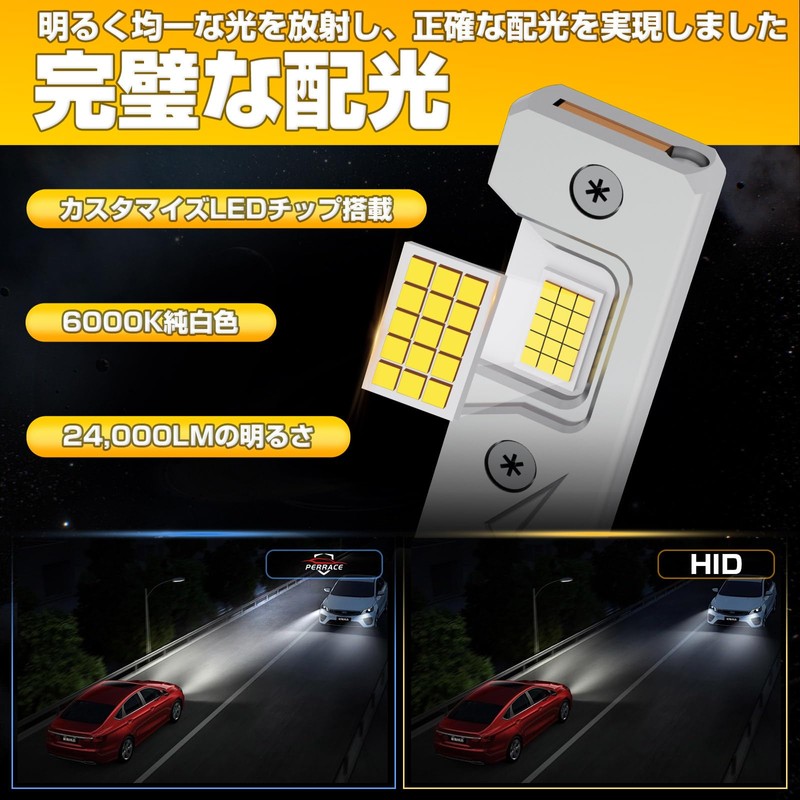 - Amazing 24,000 lm D3S LED Headlights: With 6,000 K white color, it greatly improves safety while driving. The maximum amount of light is exhibited at the moment you light it up, giving you overwhelming night visibility. With 24,000 lumens of brightness over HID, it can illuminate the distance clearly
