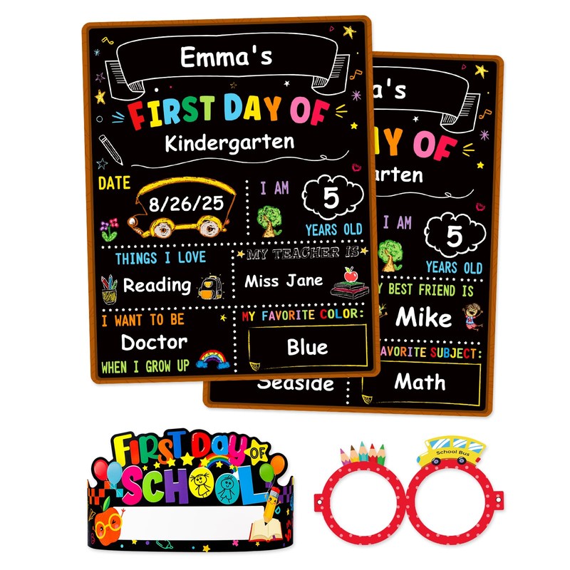 - 【Package & Product】You will get a double-sided first and last day of school board, a first day of school paper crown with elastic rope and 1 pair of charming glasses with elastic rope, which is an ideal photo prop for recording your kid's first day of school. With the colorful and exquisite design, this 1st day of school sign attracts the attention of kids and stimulates their interest, encouraging them to think and express their favor and dreams.