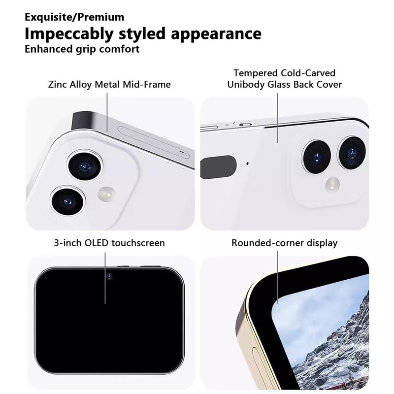 - [Premium Build Quality] – This CCD music camera features a zinc alloy metal frame, tempered glass back cover with cold-carved detailing, and a rounded display for enhanced safety and durability.