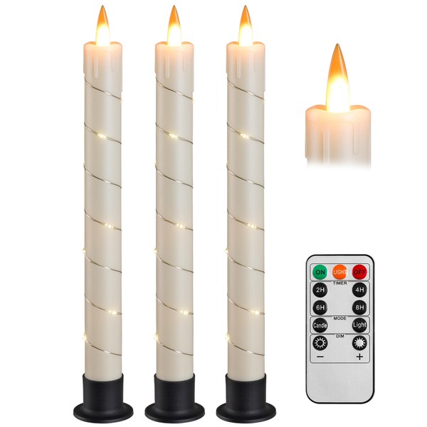 Da by 3 Pcs Flickering Flameless Battery Operated Taper Candle-Window Candles with Remote and Time-LED 3D Dynamic Flame-9.6 Inches for Wedding, Party,Home Decoration-Ivory