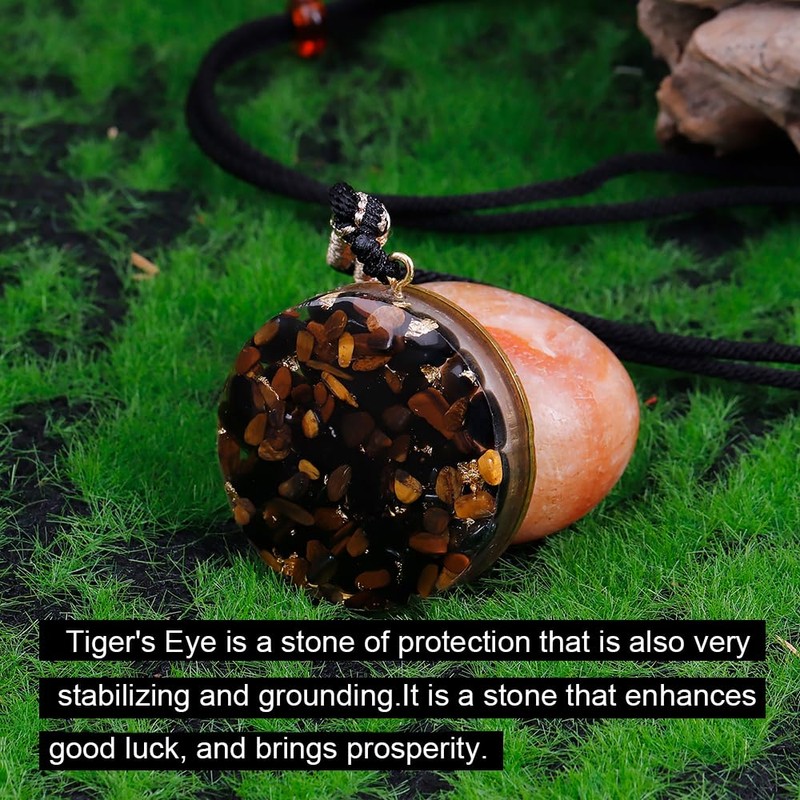 - The pendant is made of tiger's eye, obsidian, copper and resin. The size is about 3.5cm