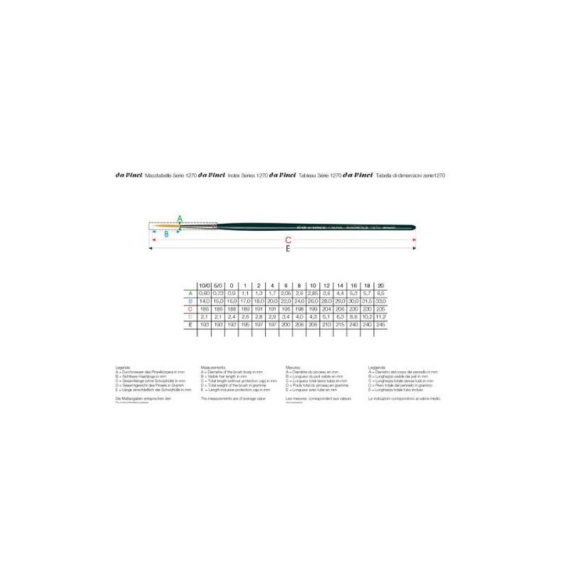 Da Vinci 1270 Series Lettering Brush, Synthetic Fiber, Green, 19.6 x 0.2 x 30 cm