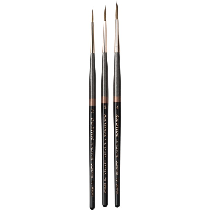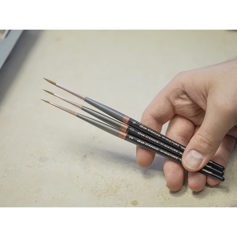 - The brushes are round, extra long and extra pointed, selected Kolinsky sable hair for details and surface, for priming and painting.